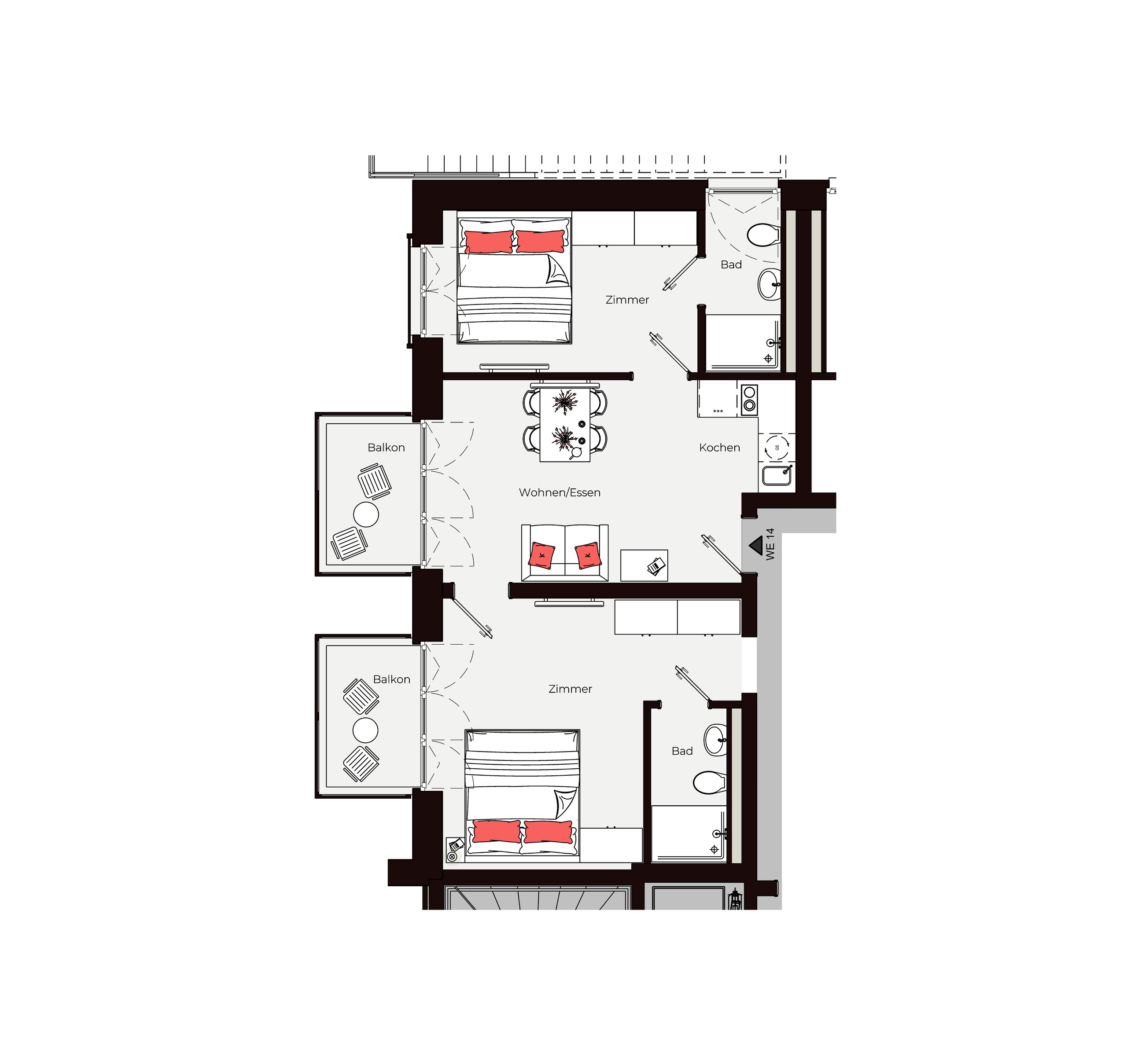 55 m², zwei Schlafzimmer, zwei Bäder – dieses Apartment ist ein vielseitiger Rückzugsort für Paare oder kleine Familien. Die klaren Linien und das helle Design verleihen ihm Leichtigkeit, während die beiden Balkone zusätzliche Freiheit bieten. Ob Frühstück mit Sonne oder Abendstunden mit frischer Brise: Hier spürst du das maritime Flair direkt vor der Tür. Dieses Apartment ist ideal für Gäste, die einen modernen Lebensraum suchen, der Ruhe schenkt und trotzdem mitten in Büsum liegt.